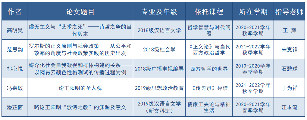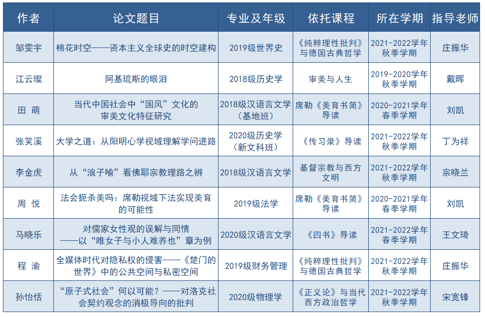 依托书院通识核心课程的课程论文或小组讨论稿,向学校推荐47篇参赛论文,最终共有28篇通识课程论文获奖,其中一等奖5篇、二等奖9篇、三等奖9篇、优秀奖5篇;四虎影院