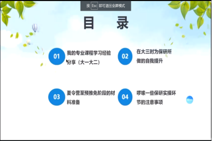 范思韵同学首先向参会同学们介绍了此次分享会的两位特邀嘉宾,并预祝本次分享会成功举办。简短的开场白过后是三位保研成功学子的个人分享环节。