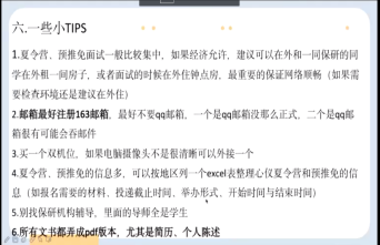 吕航的分享主要分为四个方面:专业课学习经验;大三时的自我提升;夏令营预推免材料准备;保研实操环节的注意事项。关于专业课的学习,她结合自己所学专业建议文学专业的同学要有选择、尽量多地阅读文本;学透文学理论;以教材为导向多记多背;善于和老师沟通,今早找到自己的研究兴趣点与求学目标。在自我提升方面,吕航建议同学们可以尝试向本专业或所跨专业领域的期刊,杂志投递自己的文章,多参与科研、学科竞赛,六级成绩尽量达到600,有能力考雅思、托福最好。材料准备方面,吕航表示个人陈述可以从专业与辅修背景、学术研究与论文写作、实践经历等内容来谈。而后是实操环节中的注意事项,包括做好线上面试准备工作,线下面试摆正心态,注意礼仪等等。最后,吕航同学向大家表达了保研必过的美好祝福。