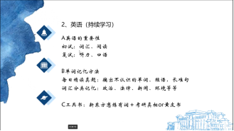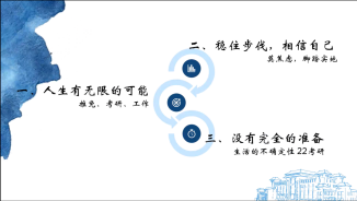 “一个领域就是life is journey,就是把人生当作一条旅途,那么考研也是我们漫漫人生路的小小一段。一段路,它也会有起点、过程、终点。”来自外国语学院2018级英语(创新实验班)专业本科生林子羚如是说。在2022年研究生考试中,她被录取至中国科学院大学外国语言学及应用语言学专业。林子羚同学主要分享了考研过程中的一些应试技巧与心态调整的问题。首先,她认为我们应该先根据自己的实际情况定好目标院校及专业,随后的收集信息的过程中则尽可能找到目标院校有经验的学长学姐探讨,同时,还应关注当地院校的一些优惠政策,充分结合自己的专业,努力做到最优规划。其次,林子羚建议:在备考的过程中,应该树立自信心,减少精神内耗,努力接纳自己的情绪及状态,尽量保持积极乐观的心态。她认为每个人都是独一无二的,我们遇到的每一次困难与挫折,都是通向成功最好的安排。