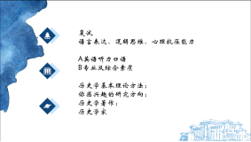在2022年研究生入学考试中,栗红岩同学被录取到中国人民大学世界史专业。本次分享会上,她主要从文科备考策略,考研复试方法等方面进行了分享,并结合自己的专业向大家详细介绍了考研择校过程中的注意事项与方法。她认为,在备考策略中,对于文科科目的复习,尤其要抓住记忆力这一因素,她也向大家分享了自己的记忆方法,比如:理清脉络,整理框架,注意知识与知识之间的连续性。最重要的是,应该将知识点真正内化为自己的东西,形成自己的记忆思维,找出内在规律,不要死记硬背。她还将英语、政治两类科目的记忆方法的差异提出了自己的见解,思想深刻,逻辑清晰。其次,栗红岩同学提示大家要在日常的学习过程中培养语言表达、逻辑思维及心理抗压等综合能力。最后,她引用了罗翔老师的一句话勉励大家:“对于不可控的事情,我们要保持乐观和自信;对于可控的事情,我们要保持谨慎和节制,你的焦虑和恐惧于事无补。”