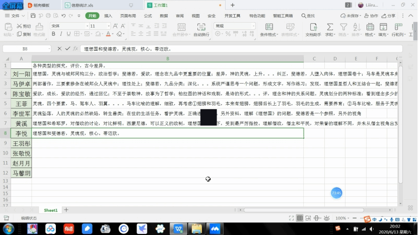 第四、比较灵魂的划分的不同方式。不同于对应五种依次下坠的政制,《斐德若》中的灵魂类型,以曾见过理念的多少分列九品,也以跟随神的不同而有所区别。在“神的灵魂”、“灵魂的身体”问题上也有新的要点可抓,如李悦、陈宝敏、刘一阳和陈嘉伟同学的发言。此外,还有王菲同学对灵魂“马车比喻”的细致分析。也有马伊卓同学注意到哲人与王在不同讨论中的分与合。对于这样的比照和对观,老师也提醒到要注意不同对话的对象和主题,而不要做笼统的体系化理解。