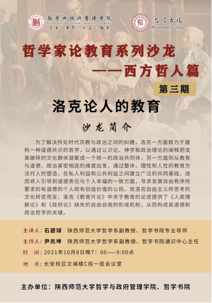 【预告•哲学家论教育系列沙龙】第三期:洛克论人的教育