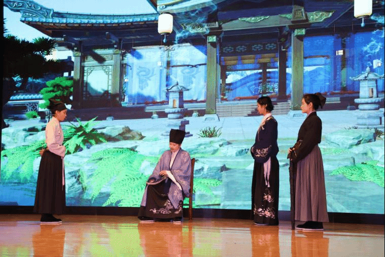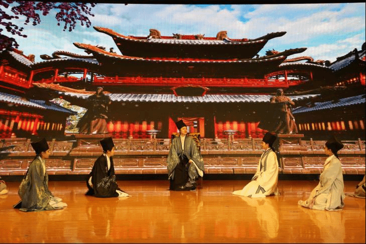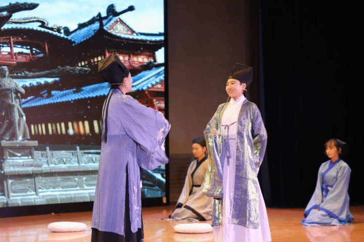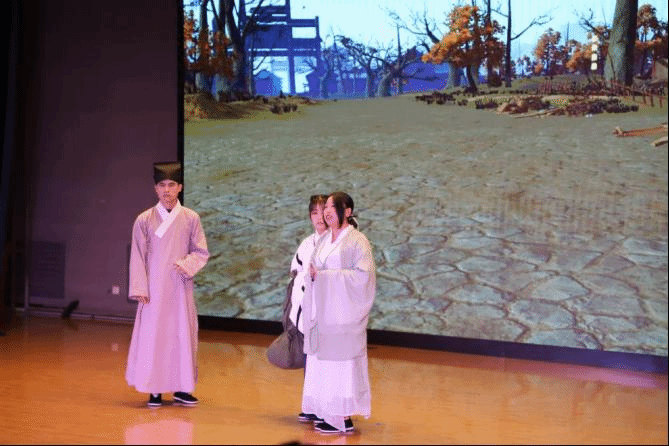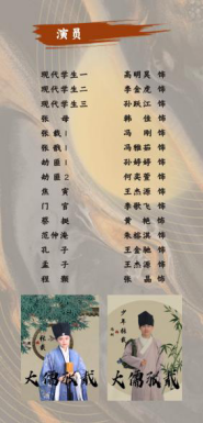 本场话剧别开生面的以孔子、孟子、程颢、范仲淹、王安石、张载、朱熹、王阳明、现代学者等人的自白作为串场,贯穿于幕与幕之间,以示道统之所传,彰显张载在确立儒家地位中承上启下的作用。同时,本剧还以舞蹈的方式呈现张载异梦,独具特色,梦中的张载得见孔圣,示其正蒙,得接道统。