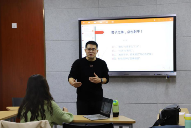 第三部分关注于孔、孟对“射礼”的改造,通过分享“后羿与逢蒙”、“子濯孺子与庾公之斯”的故事,王老师带领大家进一步思考“艺”与“礼”的关系。就“‘发而不中,反求诸己’与心性之学”的关联展开讨论。着重诠释了孟子关于“射礼之外在之行与内在之德合一”的观点:“仁者如射,射者正己而后发,发而不中,不怨胜己者,反求诸己而已矣”、“行有不德者,皆反求诸己,其身正而天下归之。”