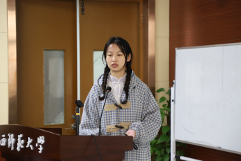 邓巧悦同学代表“返乡人和进城者的寻觅——现代性视角下的城乡对立与个体自我认同”项目团队进行汇报,她对本项目的选题、前期准备、实践的具体开展及成果做了细致介绍。