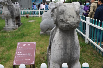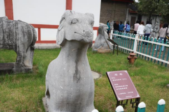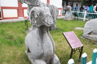 第一站首先来到昭陵博物馆。馆址所在地李勣墓位于昭陵陵园中心区,李勣墓封土平面呈倒“品”字形,南神道石刻从北向南有石人一对、石人之南西侧列置石虎三只,石虎为蹲姿,东西相望,是昭陵陪葬墓中最为高大的石刻。