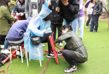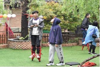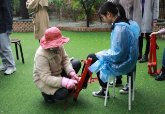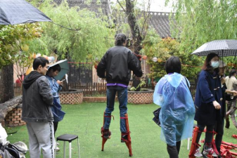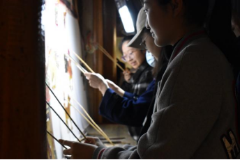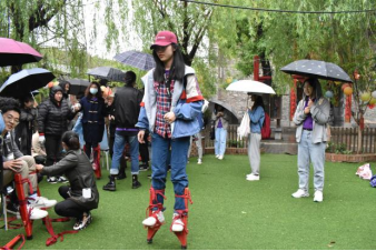 在关中非遗文化传承馆,了解了关中民间社火“踩高跷”的文化历史、艺术价值后,师生纷纷观摩、体验这项古老的技艺。大家小心地系上绑带,互相搀扶、帮助,颤颤巍巍地尝试挑战自己,在慢慢适应其中乐趣的过程中,更加深入体悟非遗文化独特的历史和积淀,民间艺人沉静而朴实的快乐和纯粹的精神之美。