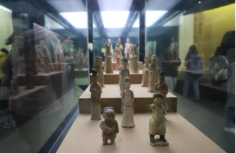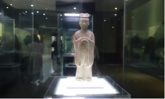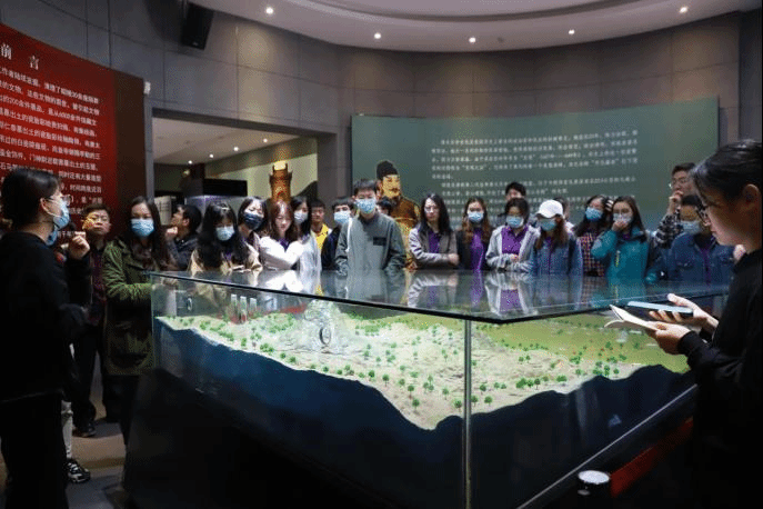 跟随馆内工作人员的讲解,师生共同参观了昭陵文物精华展、昭陵唐墓壁画展、昭陵碑林陈列室三个主题展厅。昭陵文物精华展陈列室集绘画与雕塑于一身,高贵典雅、栩栩如生的瓷胎彩绘釉陶俑成对、成组的映入眼帘,加之展厅以大纲式独立柜和叙事式通柜相结合的形式跨越式地从初唐讲述到盛唐,大家不禁为之惊叹。
