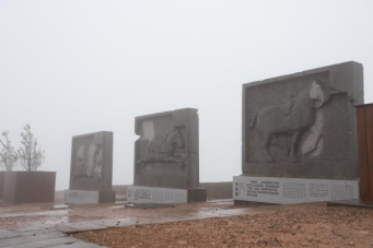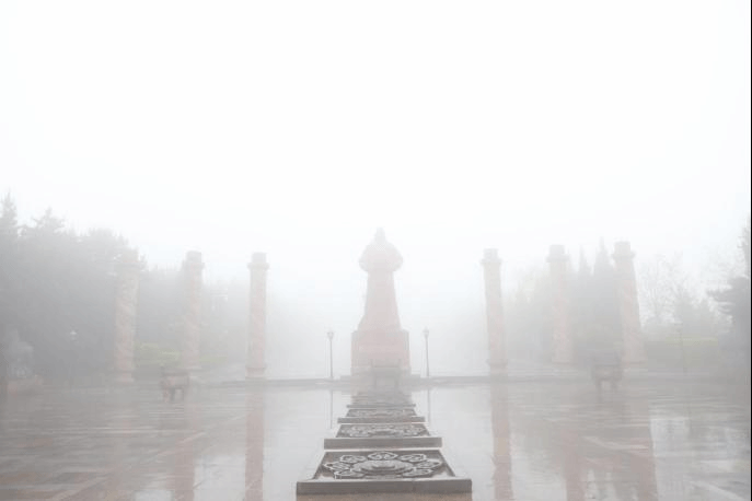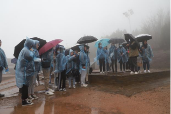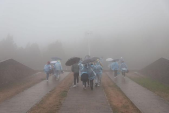 午后,师生一行来到了九嵕山下。连绵细雨中,山雾朦胧,山顶隐匿于层层迷雾之中,天空与地面接轨,为昭陵蒙上了一层神秘的面纱,待大家身处其中去探寻。