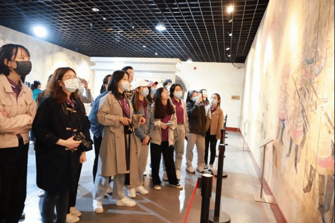 昭陵壁画代表当时绘画的主流方向,兼具艺术的前卫性。在随后的壁画展馆中,《献马图》《对舞图》《群侍图》...一幅幅构图精巧、特征鲜明、色彩明快的壁画,将唐代历史、绘画史及唐人生活的形象资料生动呈现在师生眼前。