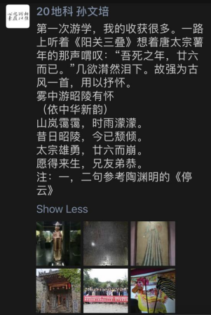 24日清晨,伴着雨后凉爽轻灵的春风,游学队伍集结出发。书院导师曹树明教授、王文琦老师,办公室高洋老师,《关中文化十八讲》课程助教郭琪琪及来自书院和哲学专业共计40余名同学共同开启本期“关中文化之旅:长安陵墓文化探秘系列”。驱车途中,在助教的主持下,高老师对本次游学行程安排及注意事项进行了详细介绍,曹老师和王老师分别就本次游学所涉及的几处考察点做了精彩讲述,随后“很高兴认识你”环节中,同学们相互熟悉后,纷纷表达了自己对陕西文化、关中文化的认识和感触,一路畅谈言欢,热闹非凡。
