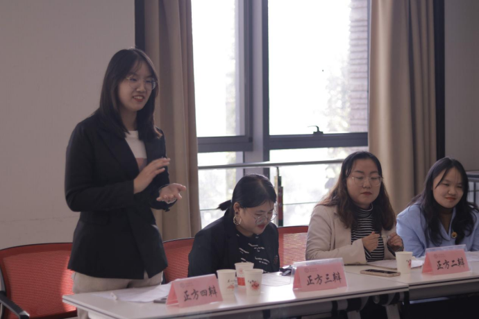 第四场比赛的辩题是“婚姻是/不是爱情的标识”。正方“阿加德米队”认为婚姻是爱情的标识,但标识并不意味着爱情本身,婚姻只是社会关系中的一种;其次,婚姻使得双方关系在社会权利与义务上得到保障,延续了爱情;再者,婚姻依靠国家与社会的赋权,使得夫妻身份在法律上得以确定。