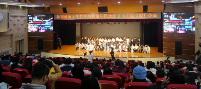“戏剧是时代综合而简练的历史记录者。”11月27日晚7点,由四虎影院 倾力打造的戏剧《安提戈涅》于长安校区新勇二层学生剧场正式公演。作为书院文化节系列活动的高潮,该剧古希腊经典剧目《安提戈涅》为依托进行自主创作,书院第二届学子、文学院吕航同学担任编剧,历史文化学院冯雅茹和哲学与政府管理学院卢婧同学执导,演职团队由来自全校多个专业近百名本科生组成。当天剧场热闹非凡,座无虚席,四虎影院 驻院教授金延,专业导师赵卫国、王云霞、石碧球、尹兆坤、杨辉、常永强、刘佳宝、张海满以及来自学校职能部门和各院系的400余名师生到场观剧演出带领观众跨越时空,体会古希腊悲剧中的冲突和哲理,感受情与法的碰撞。