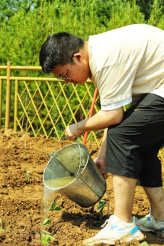 老师们也撸起袖子,卷起裤脚,在专业人士一番悉心的指导,同学们渐入佳境,干得火热耕作的热情相互感染,带动起全体同学。随后大家经过一番讨论,精选了辣椒、茄子、西红柿等蔬菜种子,在翻垄、下播、浇水中体验自然土地上“耕”的魅力,感受到触摸土地的乐趣!