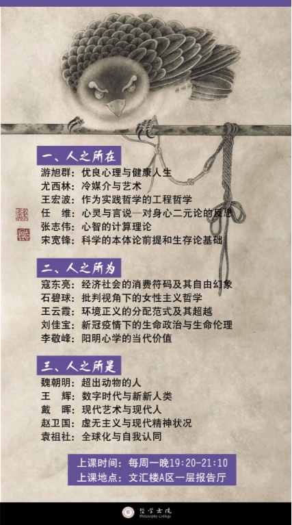 通过打造特色鲜明的书院文化和哲学通识核心课程群,为学生打开一扇通往认知和思考的窗户,帮助学生用严格的理性和批判精神,在宽广视野中反思和坚守自我、在无限天地中涵养和树立人格,激发和引导学生用哲学的智慧和思辨精神,多方位、多视角、跨学科地审视和对待自己所学专业,从而更好地为学校拔尖创新人才培养助力。