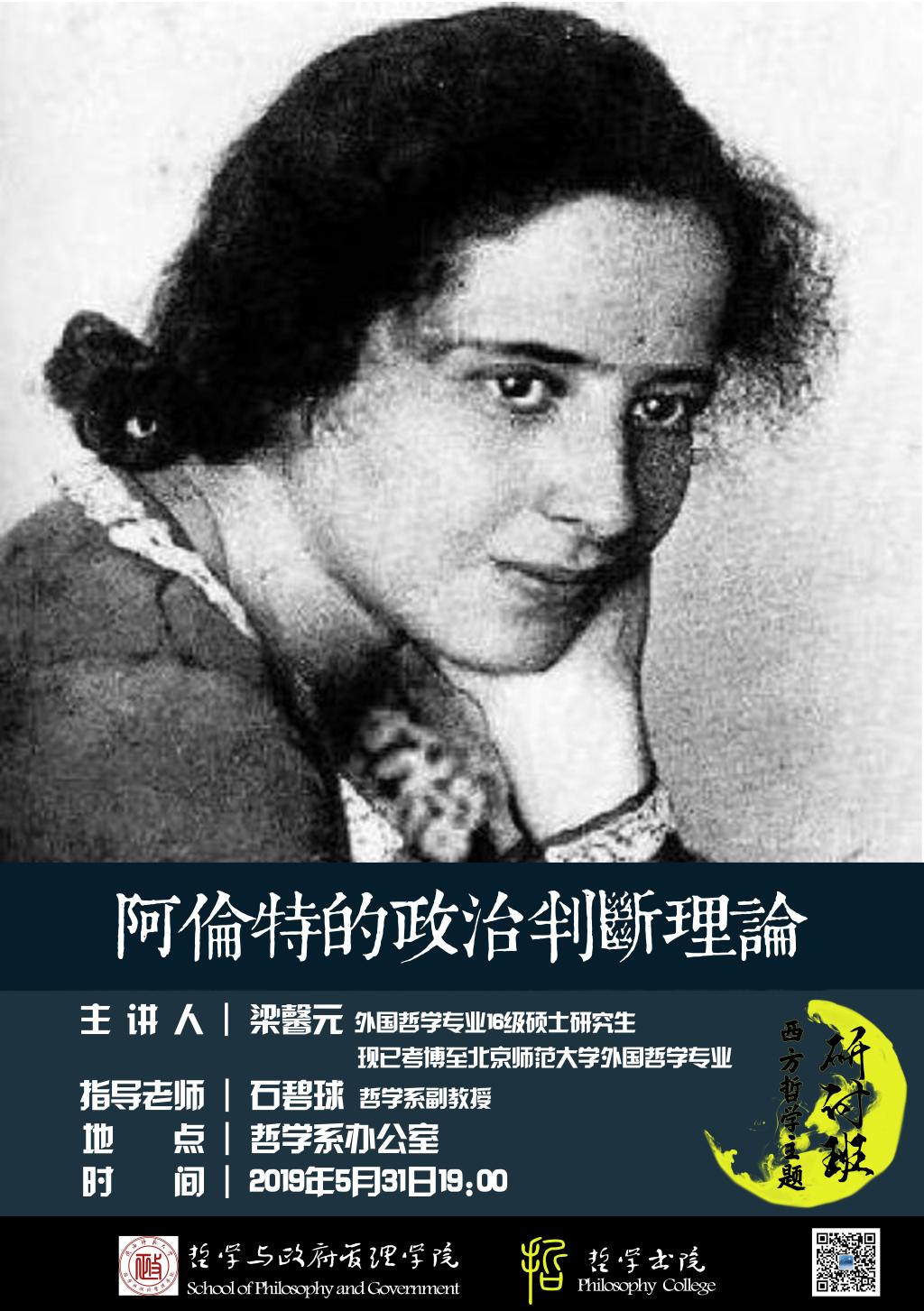 主讲人梁馨元(外国哲学专业16级硕士研究生;现已考博至北京师范大学外国哲学专业)指导老师 石碧球(哲学系副教授)地点 哲学系办公室时间 2019年5月31日19:00