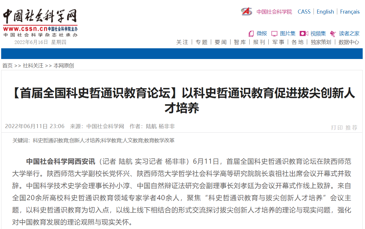 【媒体报道】首届全国科史哲通识教育论坛:以科史哲通识教育促进拔尖创新人才培养
