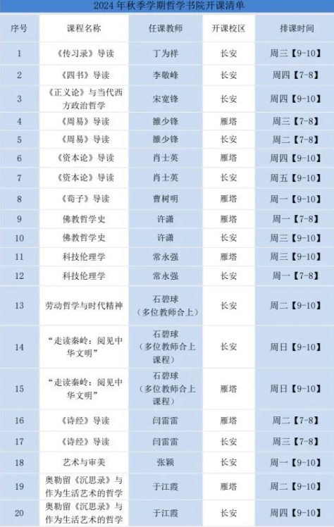 将开设首门游学实践课:走读秦岭:阅见中华文明。聚焦秦岭、长安与中华文明。该门课程将通过学术讲座、游学实践、行中会讲等多种形式展开,带领学生走出校园开展教学,穿越数千年长安,感受和认知秦岭山脉所孕育出的中华文明。