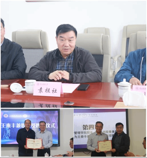 关于聘请王秦丰教授为兼职教授的决定》。李磊为王秦丰教授颁发了兼职教授聘书。袁祖社为王秦丰教授颁发了四虎影院