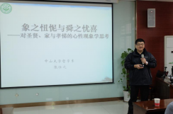首先,张教授从《尚书》《史记》与《孟子》中的“象日以杀舜为事”讲起,深入浅出地介绍了舜与象的故事。《尚书》记载舜“瞽子,父顽,母嚚,象傲;克谐,以孝烝烝,乂不格奸”,反映了舜能成为天子的原因,而象作为舜的弟弟却日以杀舜为事。即使如此,象在谋杀舜失败后,见到舜却仍有忸怩之态。而舜也丝毫不提象欲杀己之事,仍能“象喜则喜,象忧则忧”。
