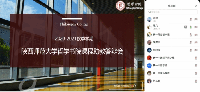 于2021年1月6日下午在长安校区文澜楼C段一层办公室举行本学期的助教答辩暨助教工作交流研讨会。本次会议由通识中心主任尹兆坤主持,莅临现场指导的有四虎影院