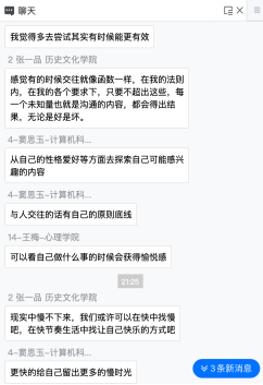第一次参加书院活动,虽然隔着屏幕,却也感受到了书院浓厚的人文关怀。和老师同学一起齐聚“云端”,分享人生的困惑与境遇,同学们的优秀和石老师的儒雅让我更加坚定了自己进入书院的选择。