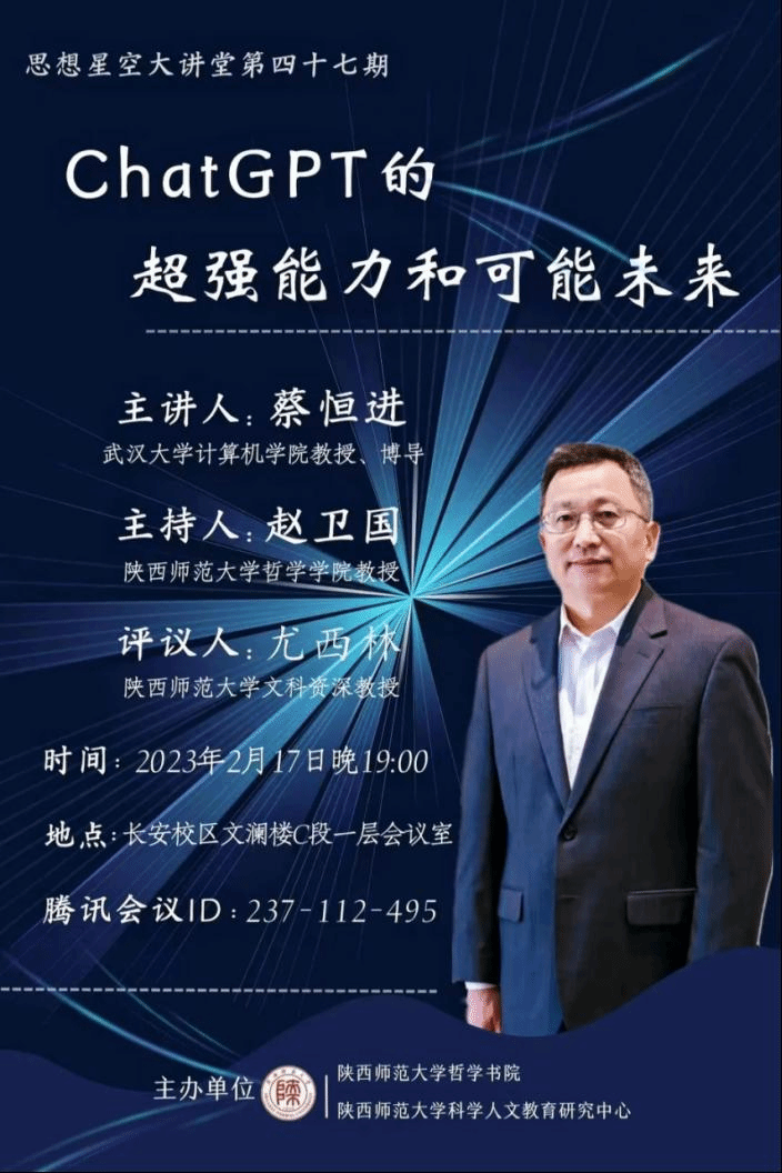 蔡恒进,武汉大学计算机学院教授、博导。2021中国准独角兽百强企业杭州宇链科技联合创始人,中国人工智能学会(CAAI)心智计算专委会副主任委员,中国移动通信联合会元宇宙产业委员会副主任委员,武汉市校友经济促进会副会长,开放原子开源基金会顾问,Springer Nature国际期刊《AI and Ethics》编委,国家工业信息安全发展研究中心区块链技术与数据安全工业和信息化部重点实验室学术委员会委员,中国碳中和50人论坛特邀研究员,CAAI人工智能伦理道德专业委员会委员,CSIAM(中国工业与应用数学学会)区块链专委会委员,中国计算机学会(CCF)区块链专委会执行委员,CCF服务计算委员会委员,中国通信工业协会区块链专业委员会(CCIAPCB)副主任委员,粤澳先进智能计算联合实验室研究员,亚洲区块链学会荣誉顾问,深圳市信息服务业区块链协会专家导师,香港数字货币研究院(HKDCA)荣誉顾问,香港国际新经济研究院高级研究员。著作《机器崛起前传——自我意识与人类智慧的开端》获得2017年吴文俊人工智能科学技术奖,著有专著《人机智能融合的区块链系统》、《区块链:链接智能未来》、《量子科技公开课》、《元宇宙:数字时代的未来治理》和《元宇宙的本质:人类未来的超级智能系统》。