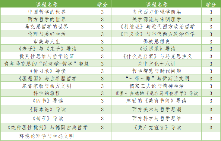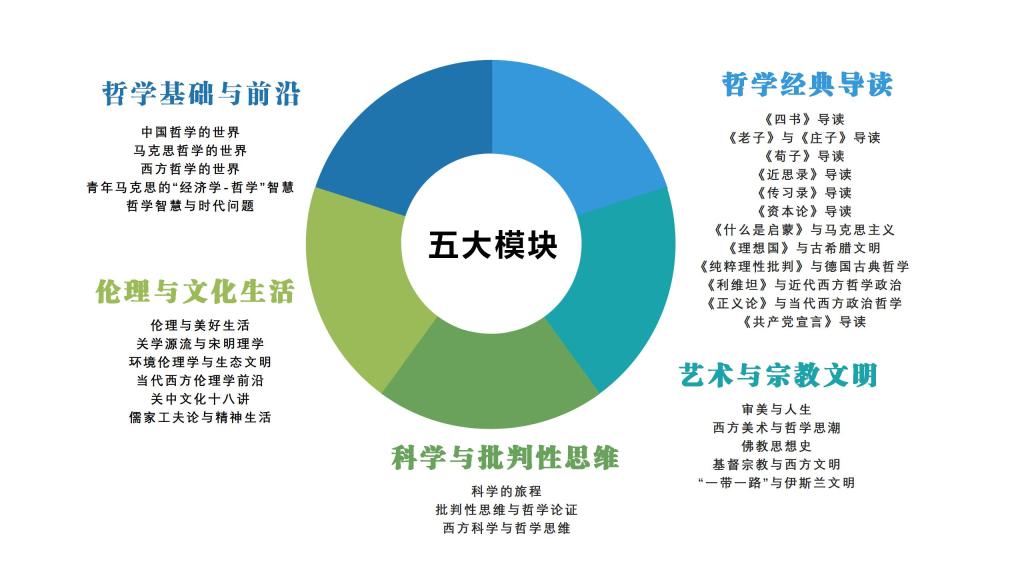 四虎影院 将提供“哲学基础与前沿、哲学经典导读、伦理与文化生活、科学与批判性思维、艺术与宗教文明”五大模块共33门通识核心课程,每学期开设10-12门课程。四虎影院 加盟学生将接受系统的哲学通识课程教育,通过健全心性修养、优良德性养成和卓越思维训练,形成特定的哲学态度和气质,成为兴趣丰富、人格完整、头脑健全的通识人才、思辨型人才,拓展和提升在原有专业的发展空间与层次。